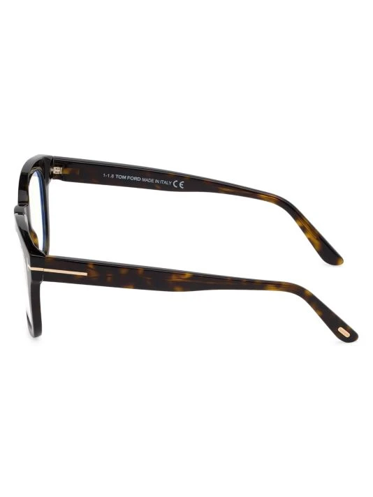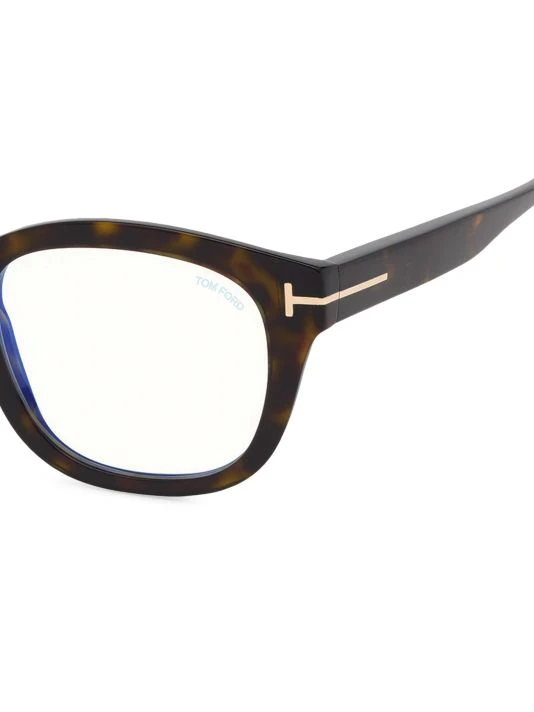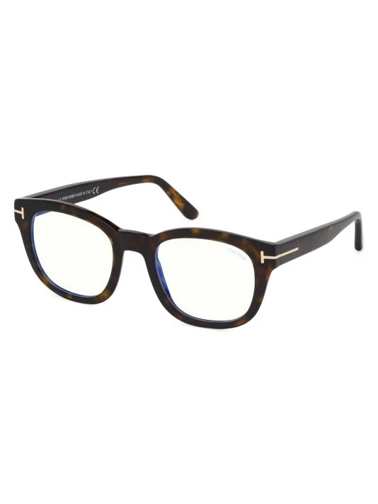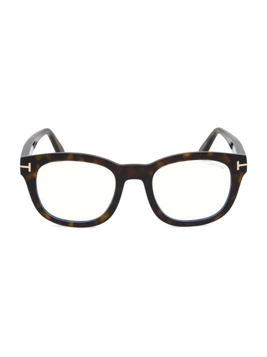 Optical frames with signature metal T at the temple features blue light filter lenses designed to reduce eye strain from digital screens.