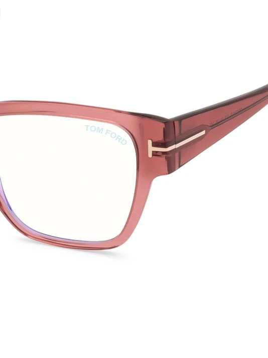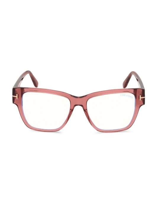 Timeless square eyeglasses flaunt signature T-logo at sides.