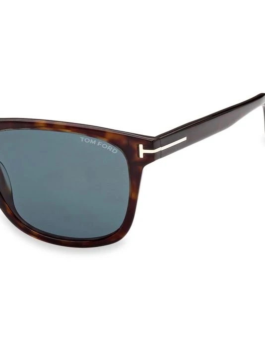 These wayfarer sunglasses in a rectangular shape showcase a tortoiseshell finish.