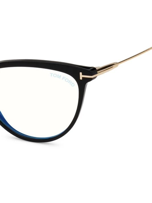 Chic round frames define these eyeglasses with slender metal temples and signature T-logo at sides.
