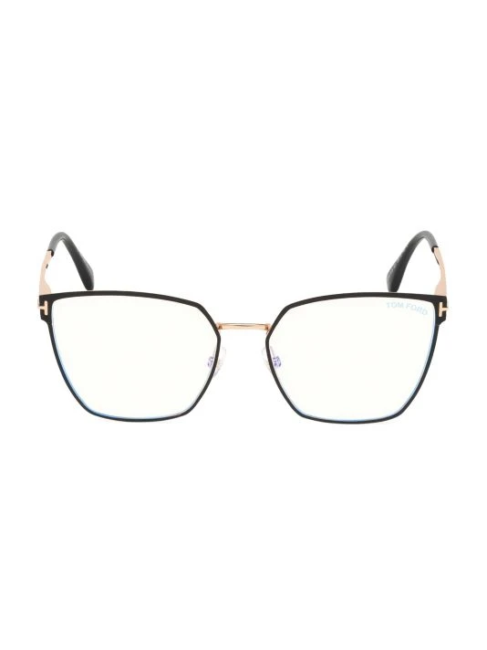 Tom Ford’s angular blue-light blocking glasses are enhanced with ‘T’ detailing at the temple.