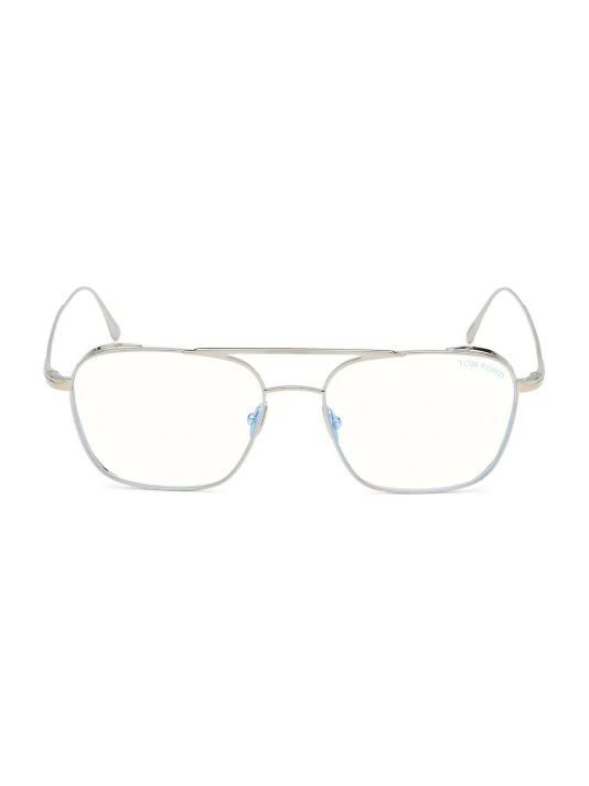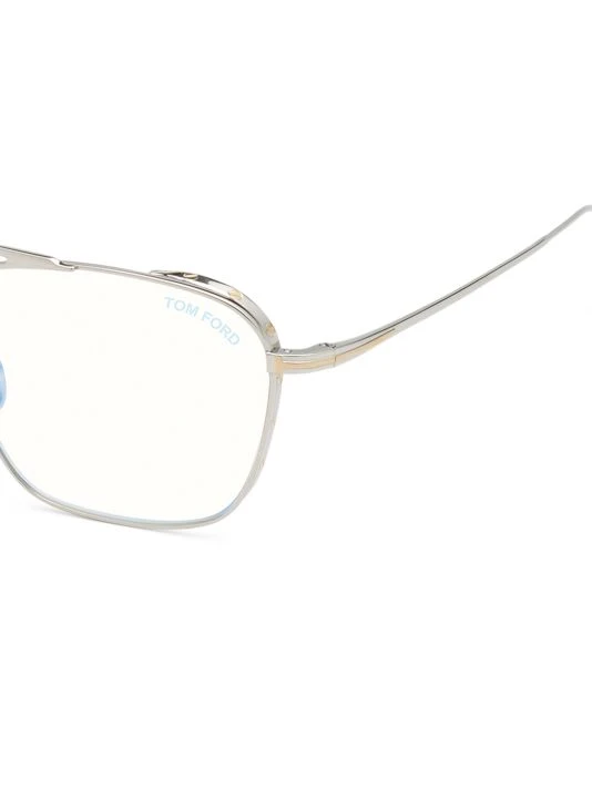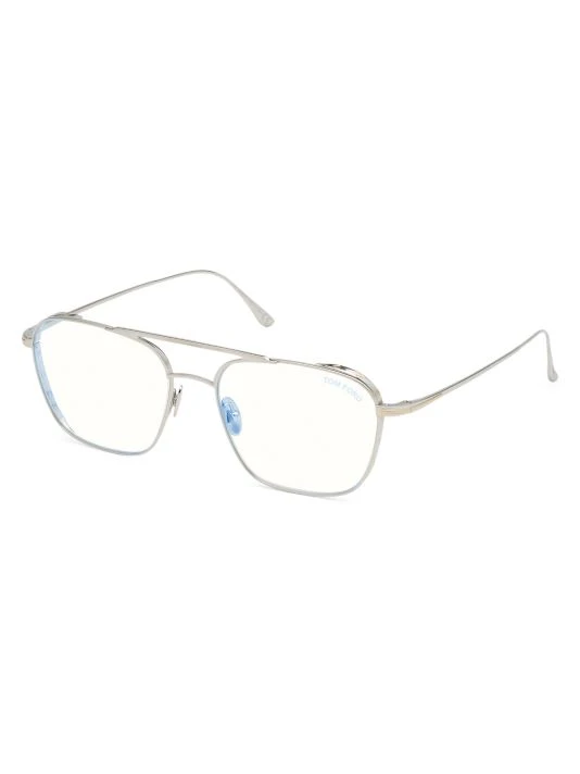 Sleek square frames highlight these titanium glasses with blue filter lenses.