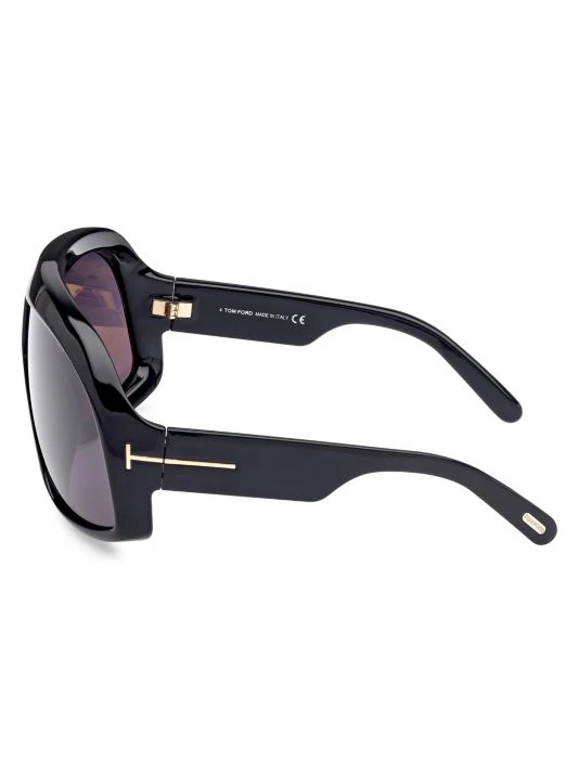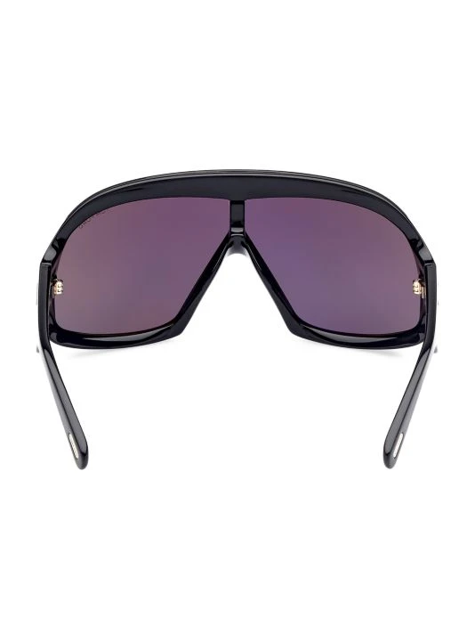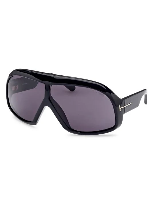 Bold pilot sunglasses boasts futuristic charm with oversized shield frames, finished with signature T-logo at sides.