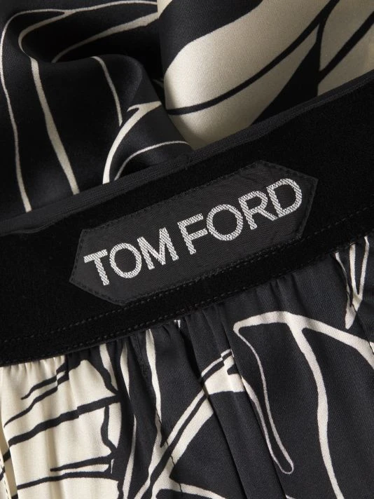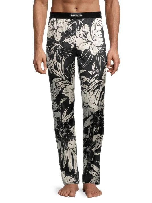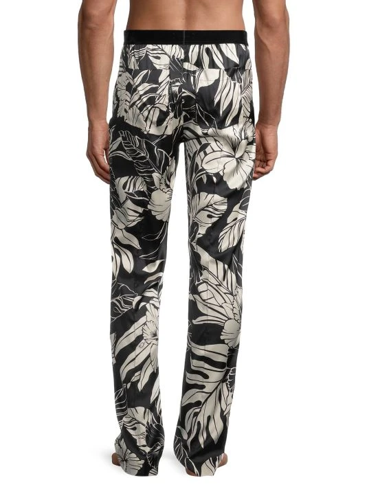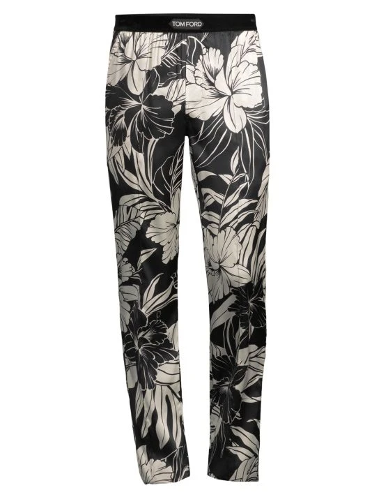 A muted hibiscus print adds tropical flair to these stretch-silk pajama pants.