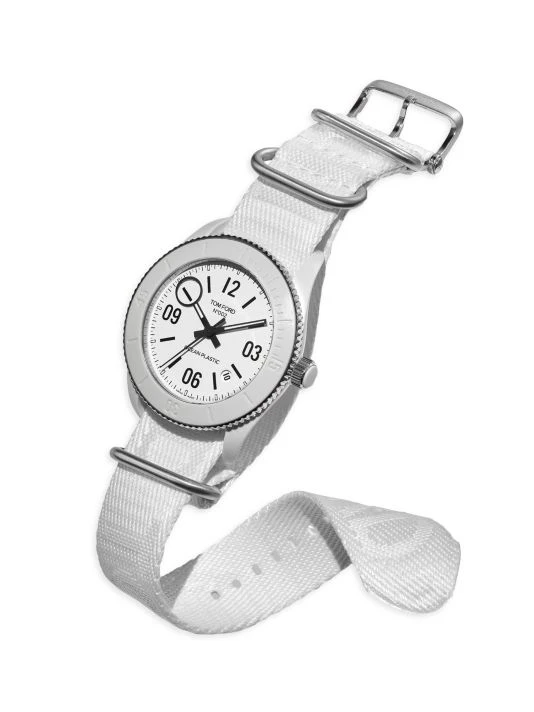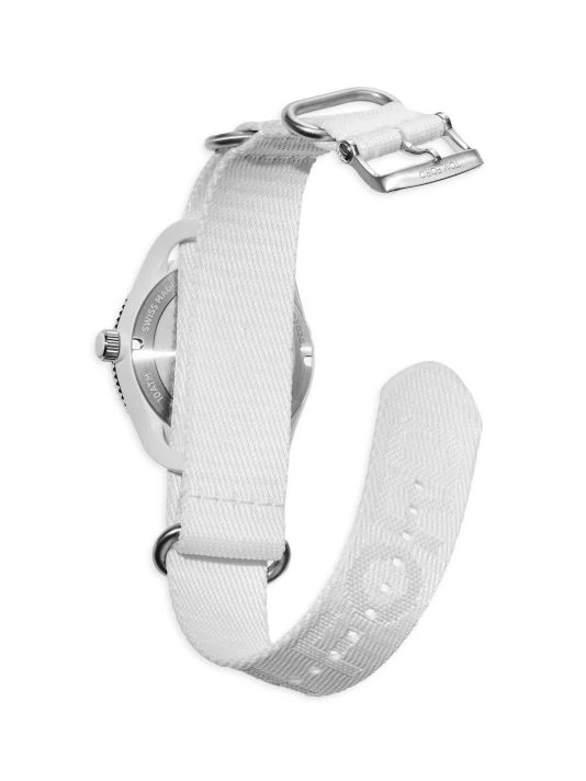 From the Ocean Plastics Sport collection. This watch features a white dial and sports both bar and numerical hour markers.