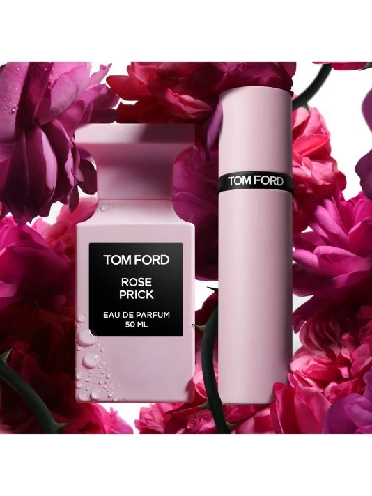 Flesh, Petals, Thorns.Rose Prick is a wild bouquet of beautiful breeds, a trilogy of Rose de Mai, Turkish and Bulgarian rose. Sharp and pristine, the piercing prickles of the stems hook onto each other, bonding their blooms in pink perfection. — TOM FORD