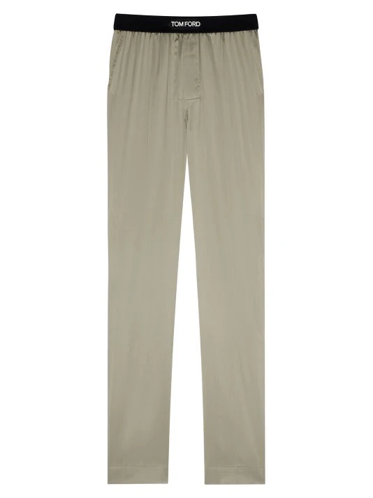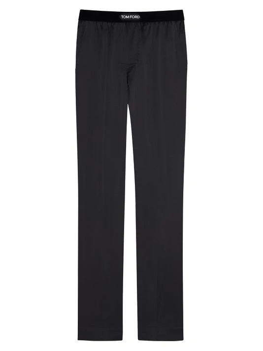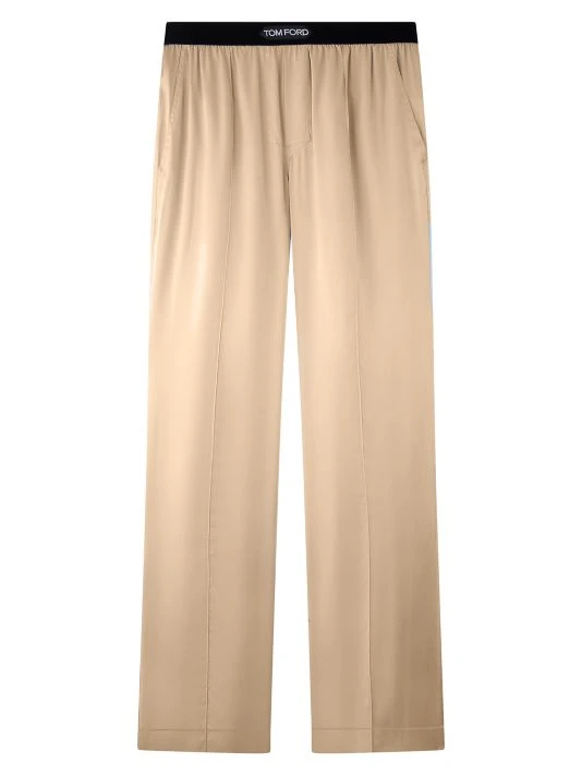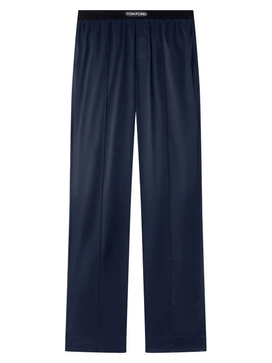 Luxurious silk-blend pajama pants with a logo waistband and front pleats.